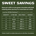 **Save up to 45% when you buy four or more Kaz Oilslick Rainbow chocolates at a time. Price per chocolate lowers significantly as you increase the number of bars in your order. Similar discounts apply to all other chocolates.**